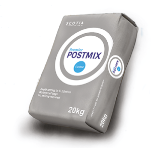 Postmix Concrete (postfix / postcrete) Fast Setting Postmix for setting fence posts – approx 15 mins 20kg bag Coarse Mix (non returnable item)
