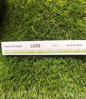 Luxe 38mm Artificial Grass 4m & 5m widths available Cut Lengths available – £18/m2 Sold in half metre increments Roll length 25m Perfect for creating beautiful and realistic-looking lawns and garden features. With a range of sizes available, you can easily find the perfect piece to bring a touch of greenery to your outdoor space….